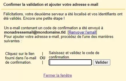 Gmail vous envoie un code à l’adresse que vous êtes en train de configurer.